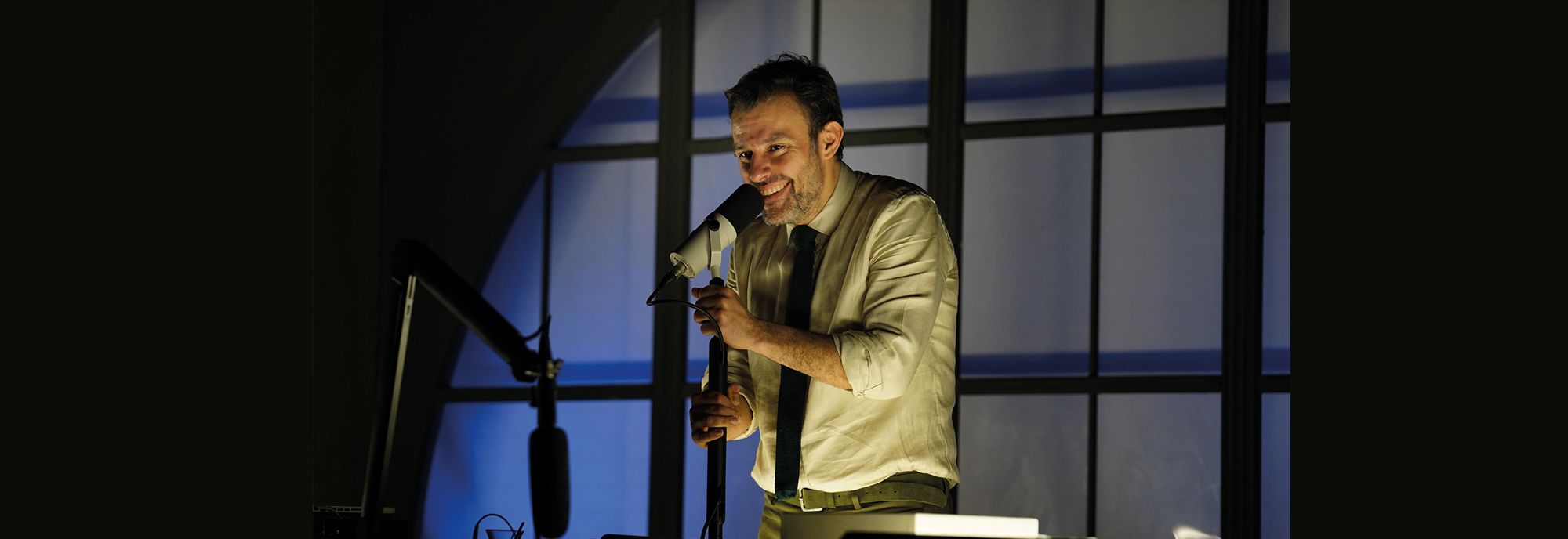Sahnede genç bir adam, bize özel bir ilgi alanından bahsediyor: Sesler.